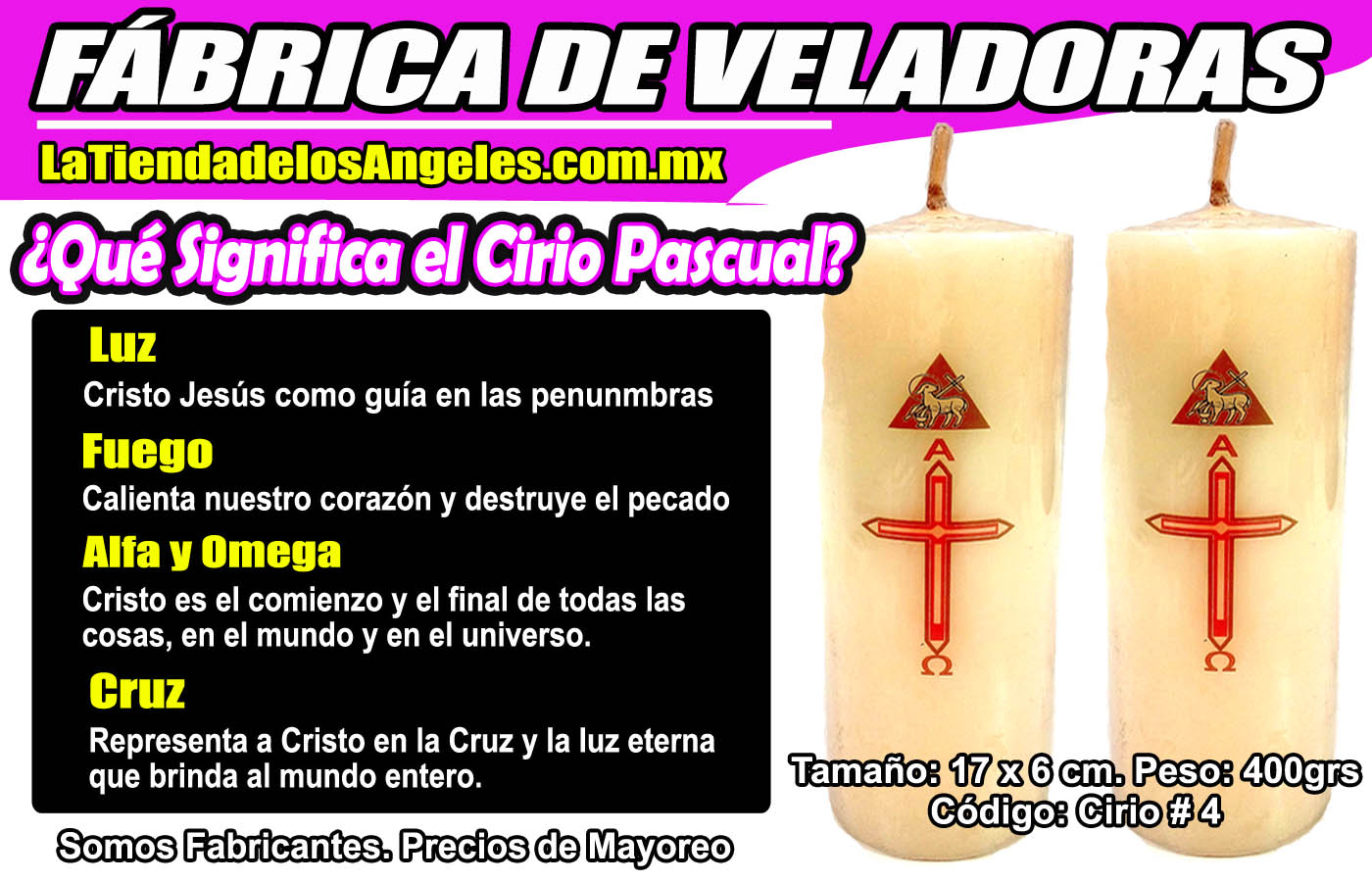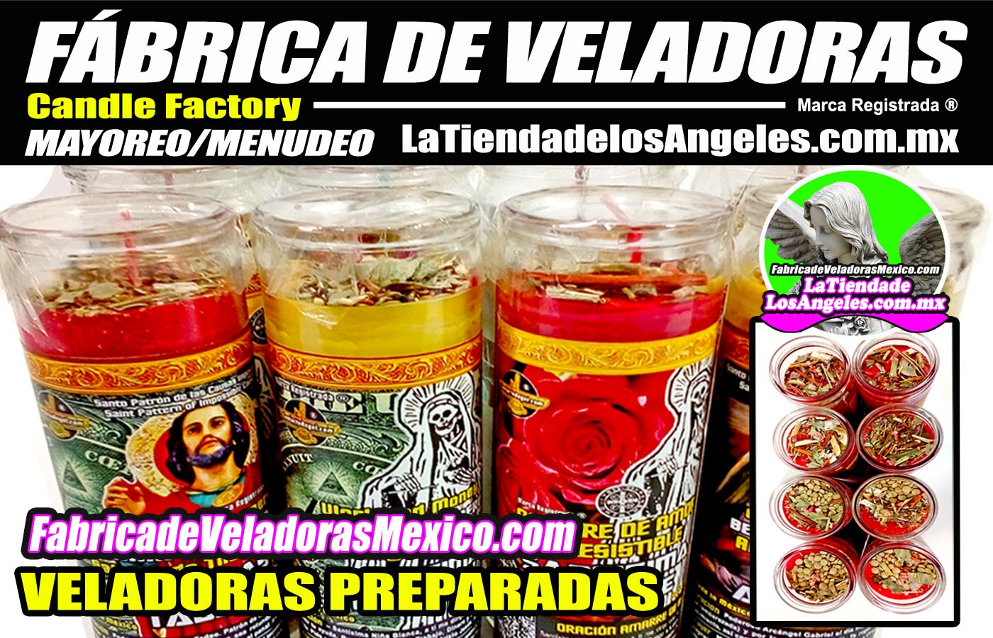 Fabrica de Veladoras Mexico – Somos fabricantes directos sin intermediarios, podemos fabricar tus veladoras desde 1 caja con un amplio catalogo de títulos y colores de tu elección. Tenemos un amplio surtido de Veladoras Esotéricas por Mayoreo y Menudeo.
